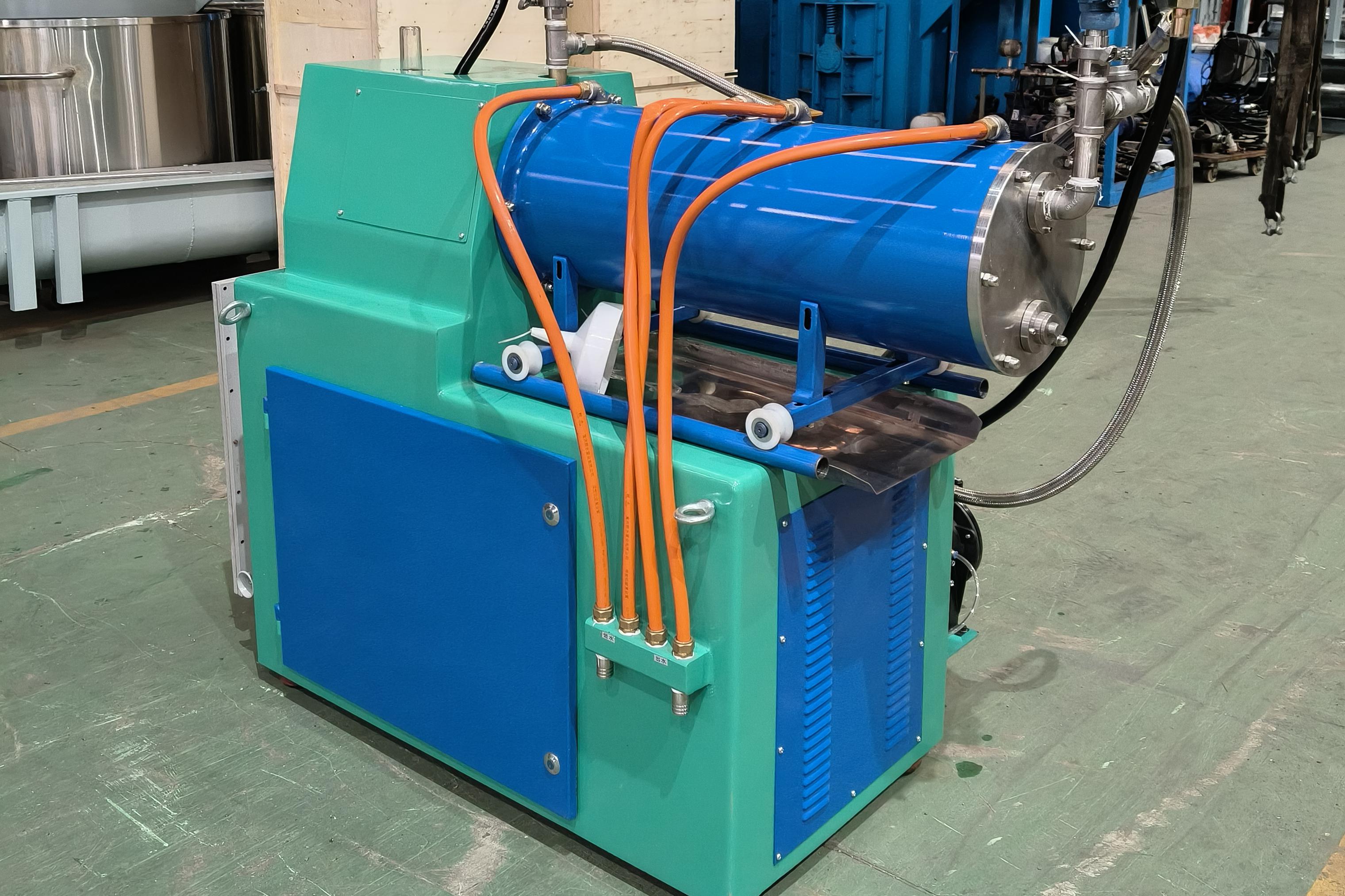 銳通NCE-15高效率臥式砂磨機適用于批量,精細化物料的研磨,高效的冷卻系統以及多間隙離心分離系統,使得物料不會因分離器堵塞而造成出料不暢。主要應用于顏料、染料、色漿、農藥、水性涂料、化妝品、非金屬礦等行業的高效率濕法研磨